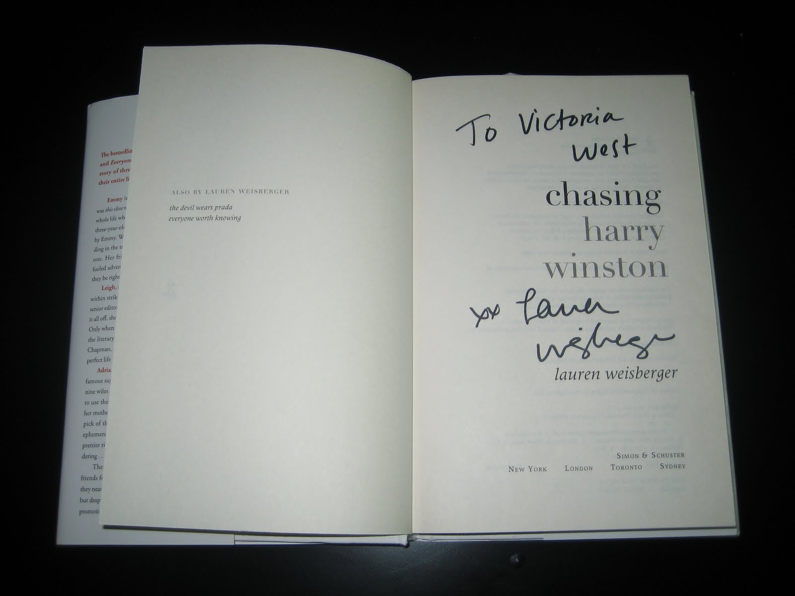 Aveam in biblioteca si celelalte 3 carti ale scriitoarei publicate precedent – The Devil Wears Prada, Everyone Worth Knowing si Chasing Harry Winston, pe care le-am citit acum 2 ani. Cand m-am hotarat sa merg la intalnirea cu Lauren Weisberger, mi-am propus sa iau cu mine cele 3 carti, sa o cumpar pe cea noua la librarie, si sa primesc autograful ei pe toate patru.